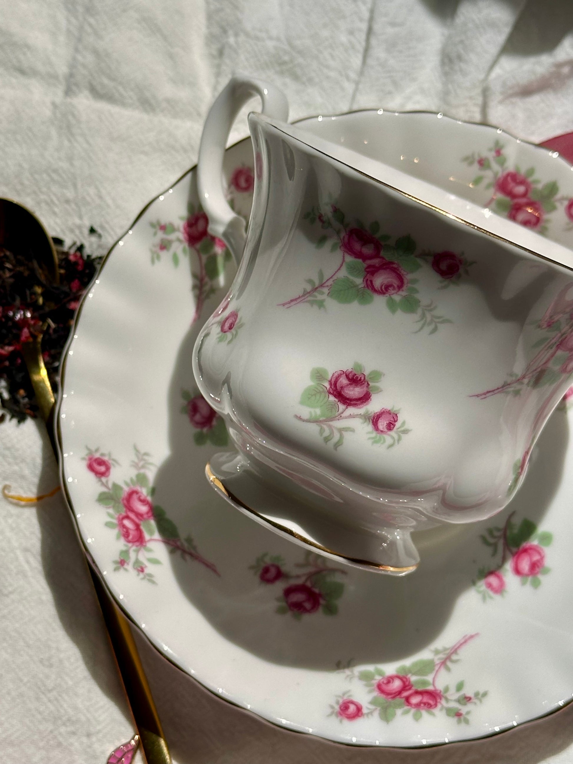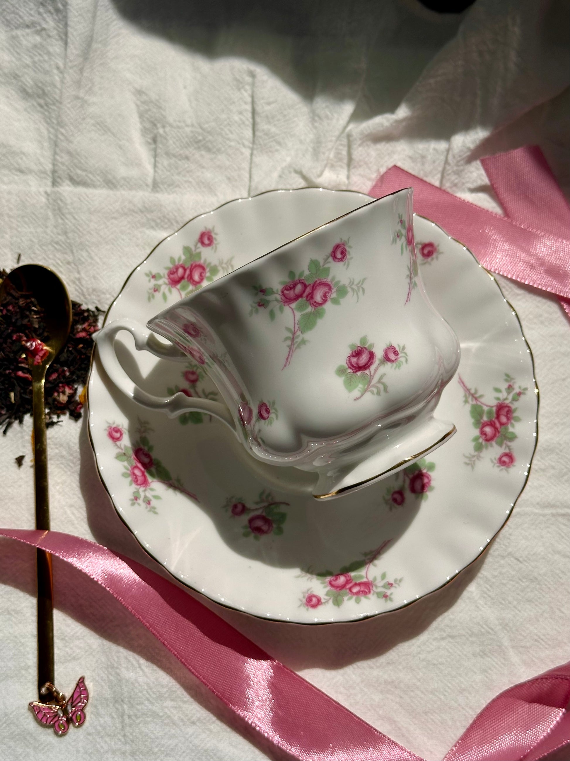 Plongez dans un jardin de roses avec cette tasse en porcelaine anglaise prestigieuse de chez Richmond (comme le célèbre quartier de Londres) ornée de roses subtiles. Ses reflets dorés capturent la lumière, invitant à une parenthèse enchantée, le temps d’un thé aux doux parfums d’antan... ✨🌹